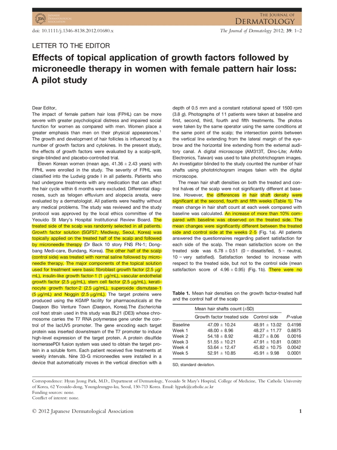 - The concept of topical growth factors + microneedling delivery was tested under a controlled design.