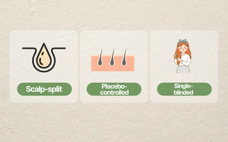 - Scalp-split: each participant’s scalp was divided into two halves; one half received the active topical solution and the other half served as a control.