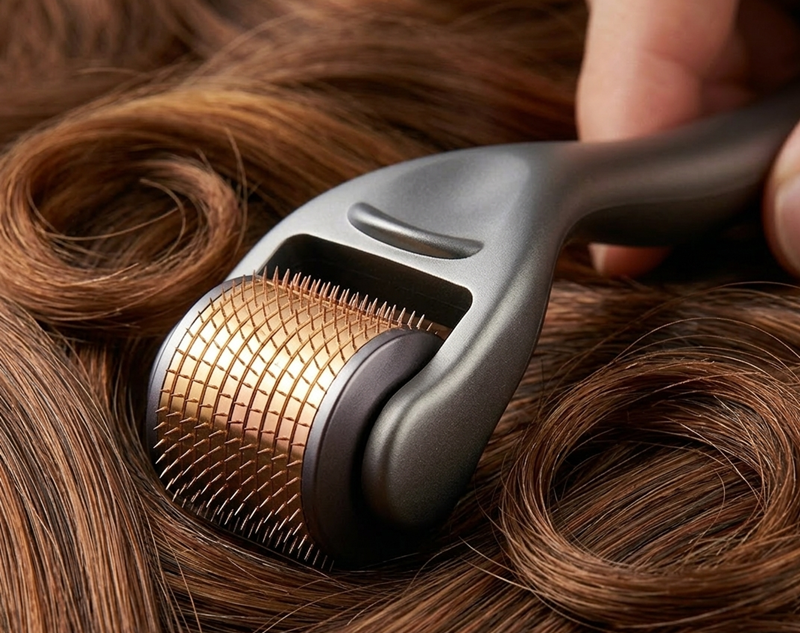 After topical application, both sides of the scalp underwent microneedle therapy.